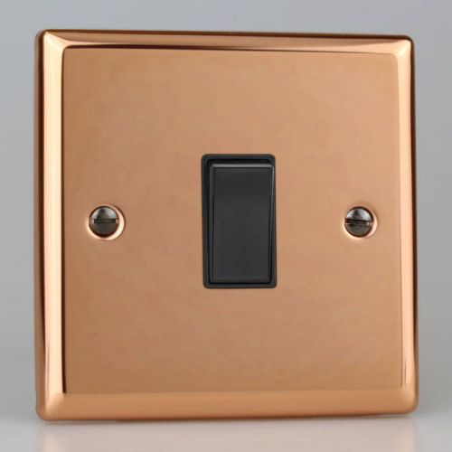 VARILIGHT POLISHED COPPER 1G 2W LIGHT SWITCH BLACK INSERTS