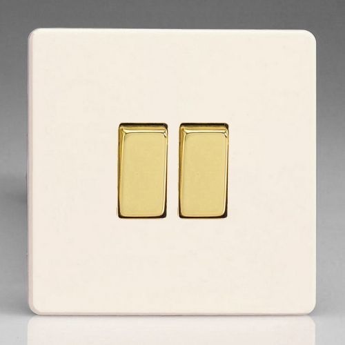 VARILIGHT PRIMED WHITE SCREWLESS 2G 2W SWITCH BRASS SWITCHES