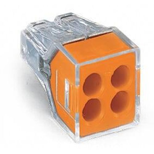 Wago 773-104 Transparent 4 Pole Push Wire Connector With Orange Cover For Junction Boxes (Pack Size 100) 0.75mm – 2.5mm